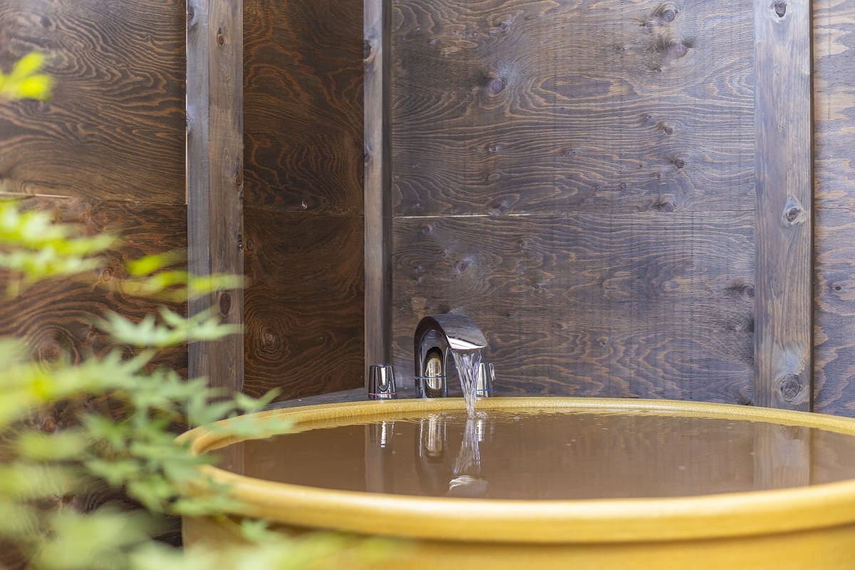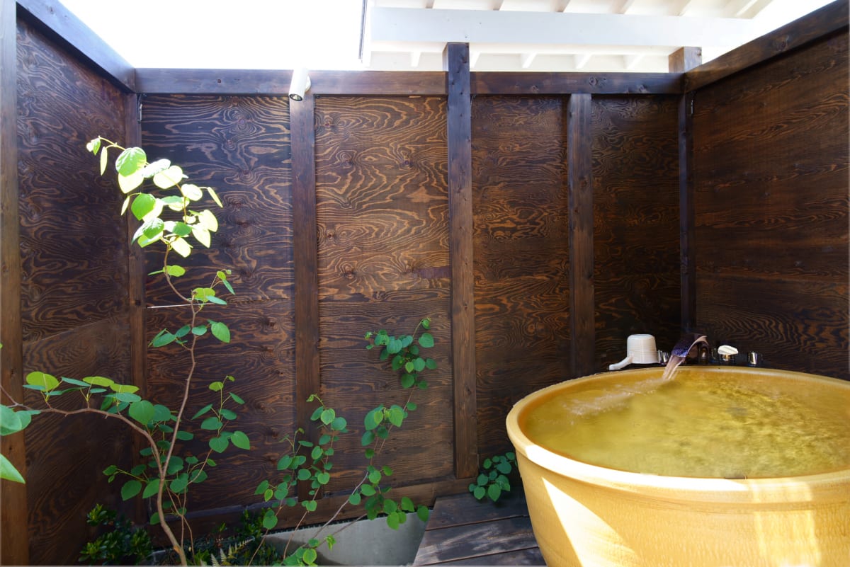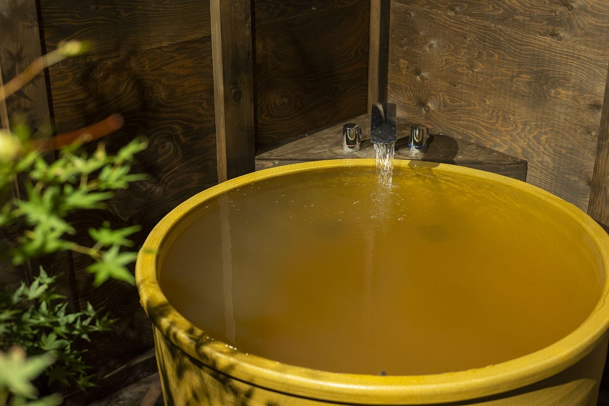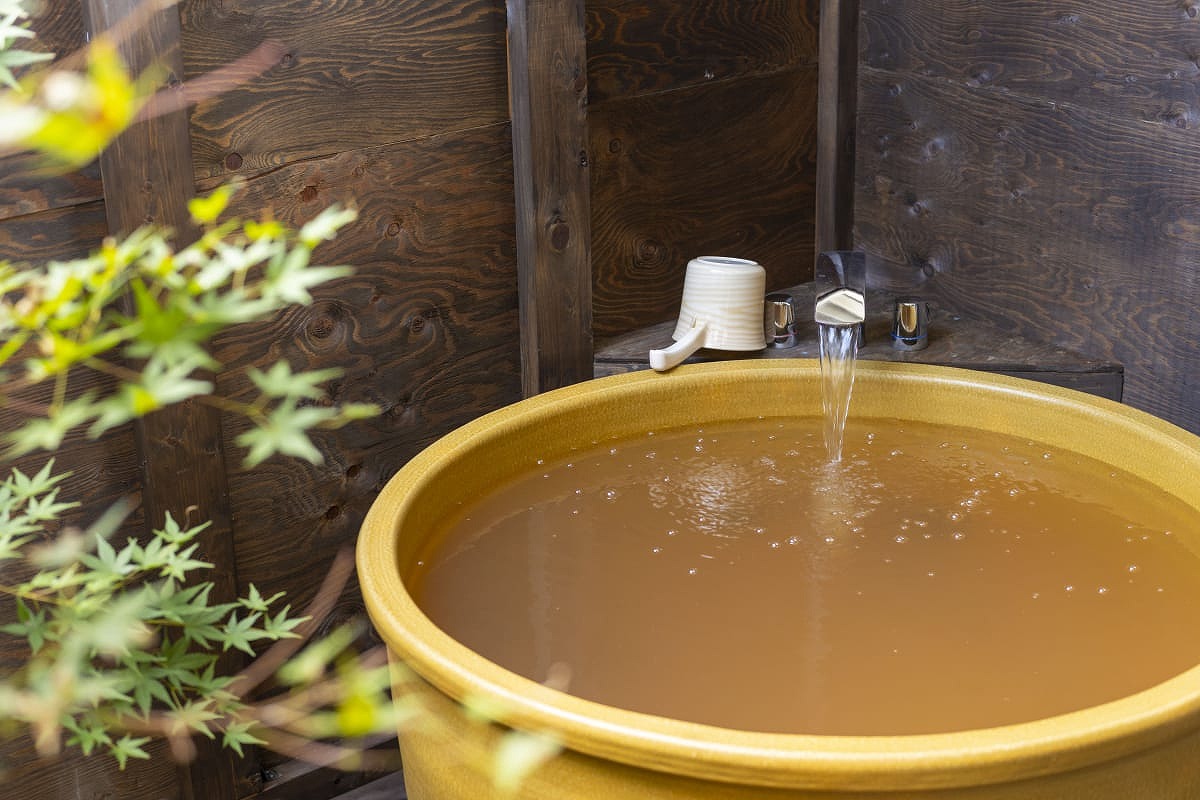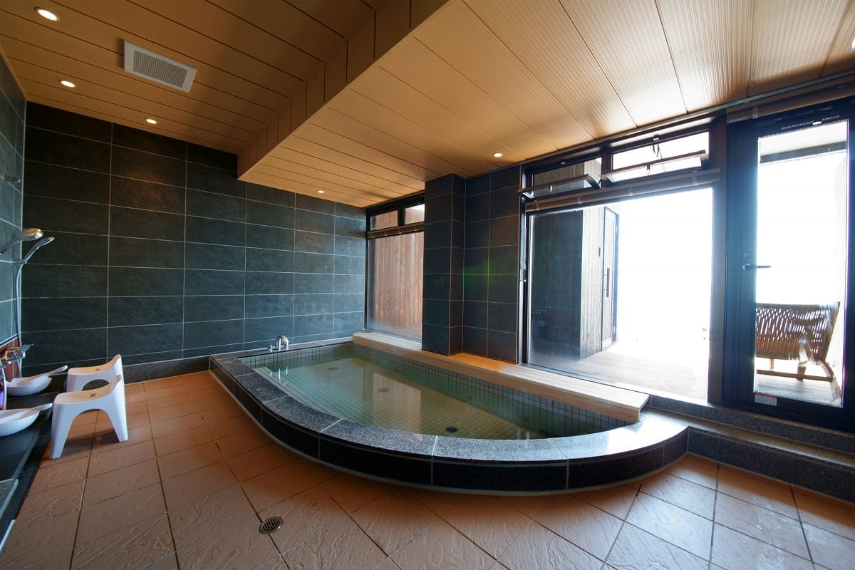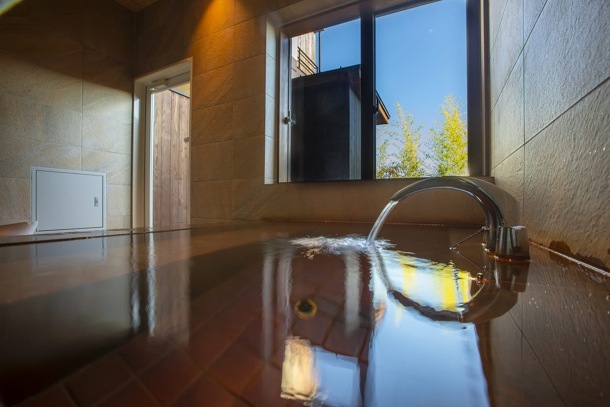 全室客室内温泉を完備。24時間気兼ねなくお好きな時間にごゆっくりお寛ぎいただけます。