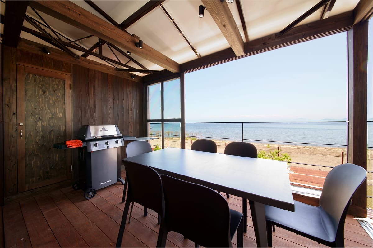 全天候でBBQ可能な、屋根・壁付きのBBQスペースを完備。