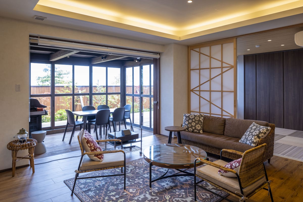 ワンちゃんをお連れのお客様はグランドーム滋賀高島の管理棟でもある「ドッググランピング滋賀高島」もおすすめです。全室プライベートドッグランを完備し、愛犬グッズも充実♪さらには保湿効果の高い天然温泉の貸切風呂もご利用いただけます。