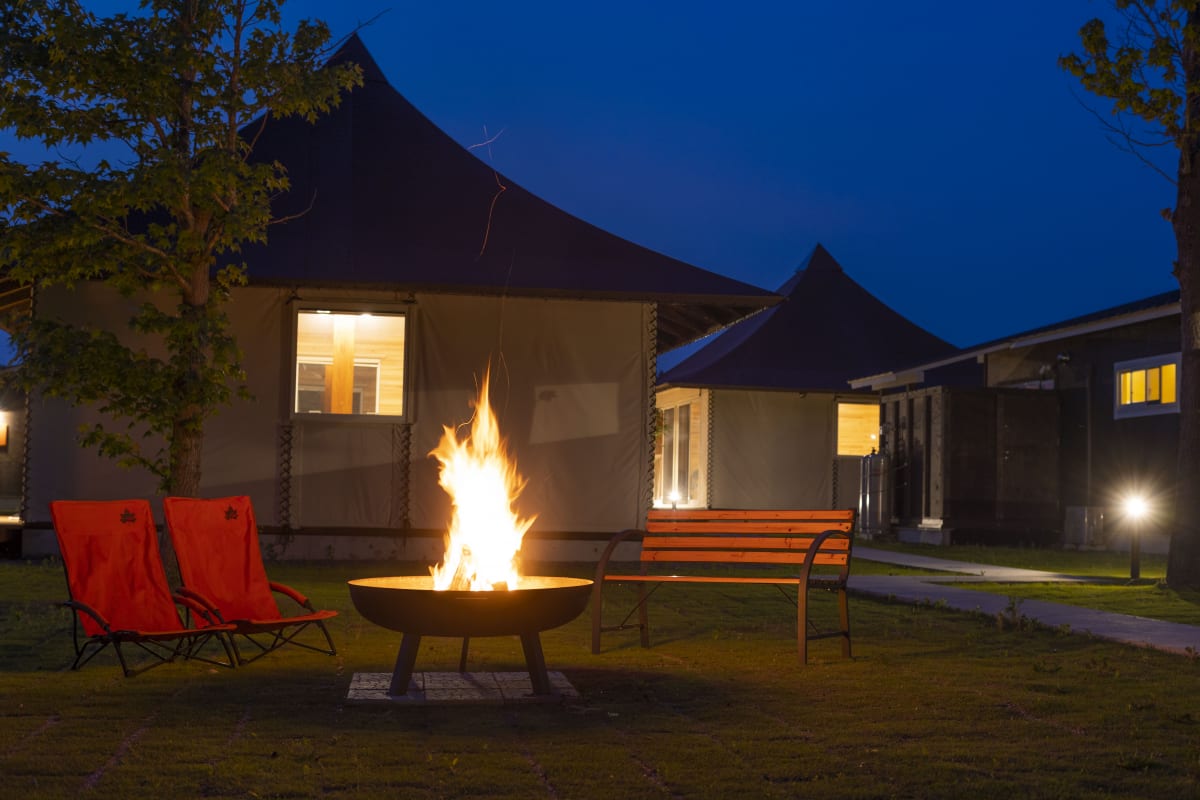 レイクサイドテラス琵琶湖と同じ滋賀県高島市エリアのグループ施設『グランドーム滋賀高島』は全6棟のドーム型テントグランピング施設。プライベートガーデン・専用のキャンプファイヤーを備え、なんとクリアドームのナイトバーでは、ビールを始めお酒類・ソフトドリンクが飲み放題♪