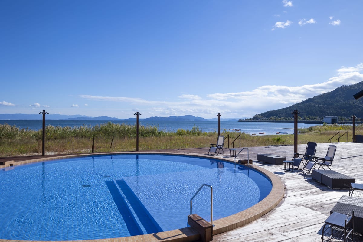 客室温泉やプール、サウナなどの設備が整っており、カヤックやSUPといった琵琶湖を満喫するアクティビティも充実しています。
