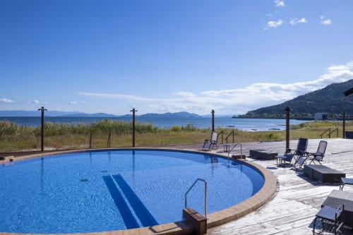 天然温泉やサウナ、プールといった設備が充実しており、レイクアクティビティやグランピングBBQなど、本格アウトドア体験を大人から子どもまで幅広い年代が楽しめる施設です。